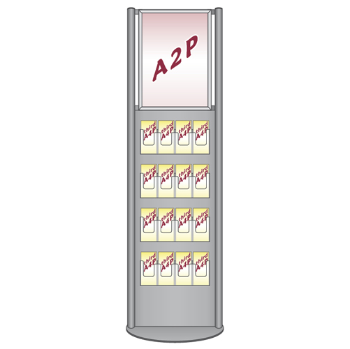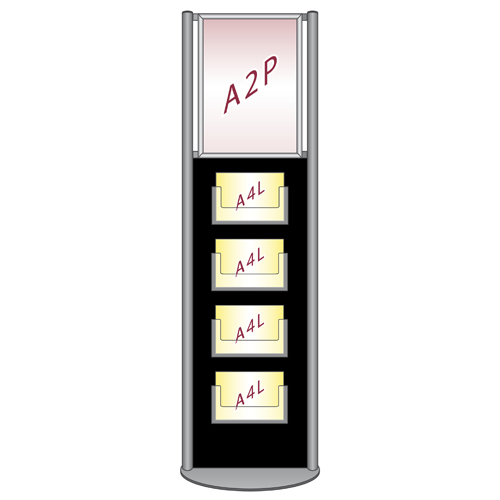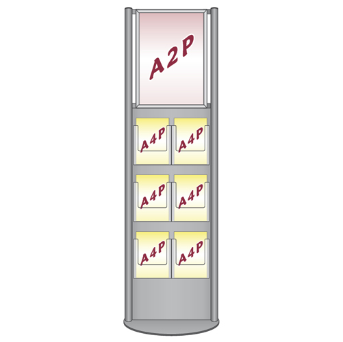 • Flexible floor standing display, 2m tall, with brochure holders and an A2 portrait 'snap' frame to hold a poster