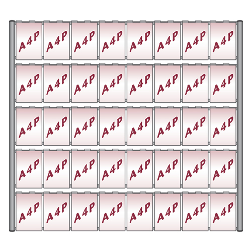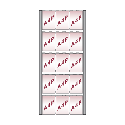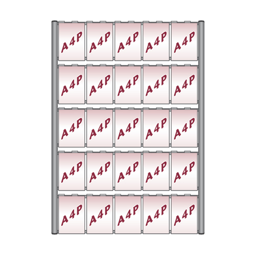 Removable A4 portrait holders hang on the 'rungs' of an aluminium 'ladder' mounted on the wall, to display posters or detail cards.