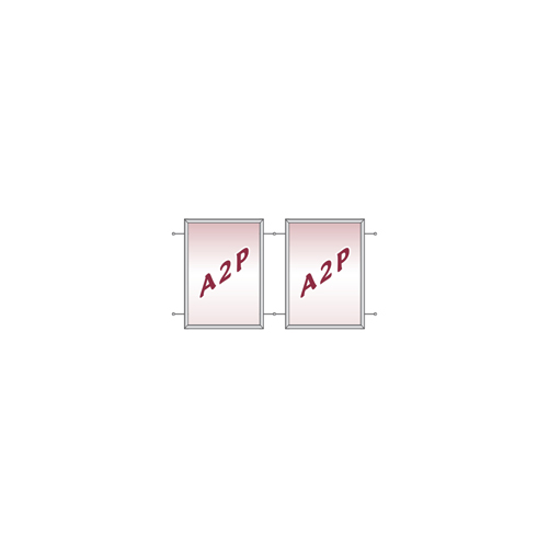 Anodised aluminium 'snap' frames are mounted on a pair of stainless steel bars (or rods) clamped to the wall.