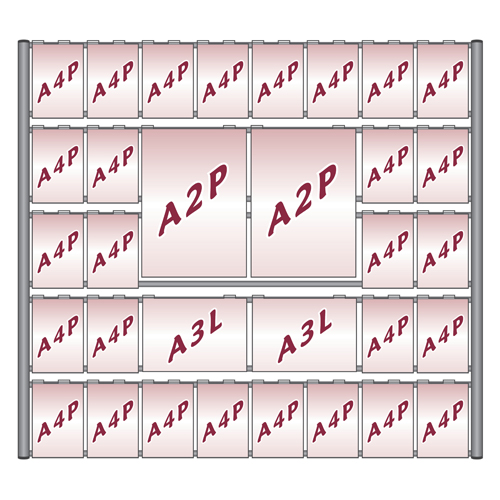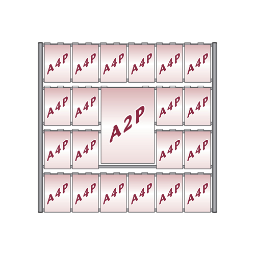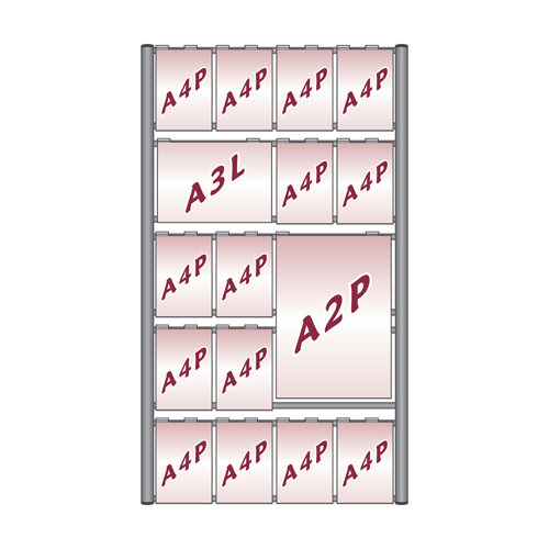 The components are supplied as part of the kit are exactly as for the A4P wall ladders, except that A2P and / or A3L poster holders are supplied as well as, or instead of, A4P holders.